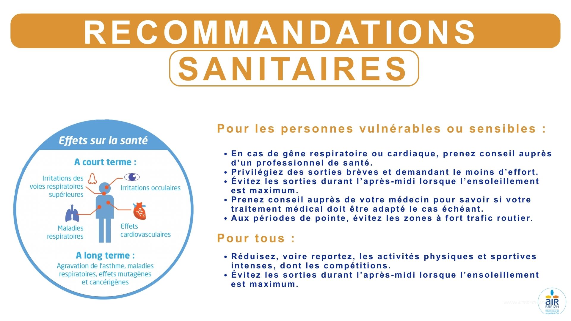 Les personnes dites sensibles (par exemple diabétiques, immunodéprimées ou sujettes à des symptômes lors des pics de pollution) doivent également redoubler de prudence.