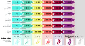 Échelle et seuils de l’indice pollen