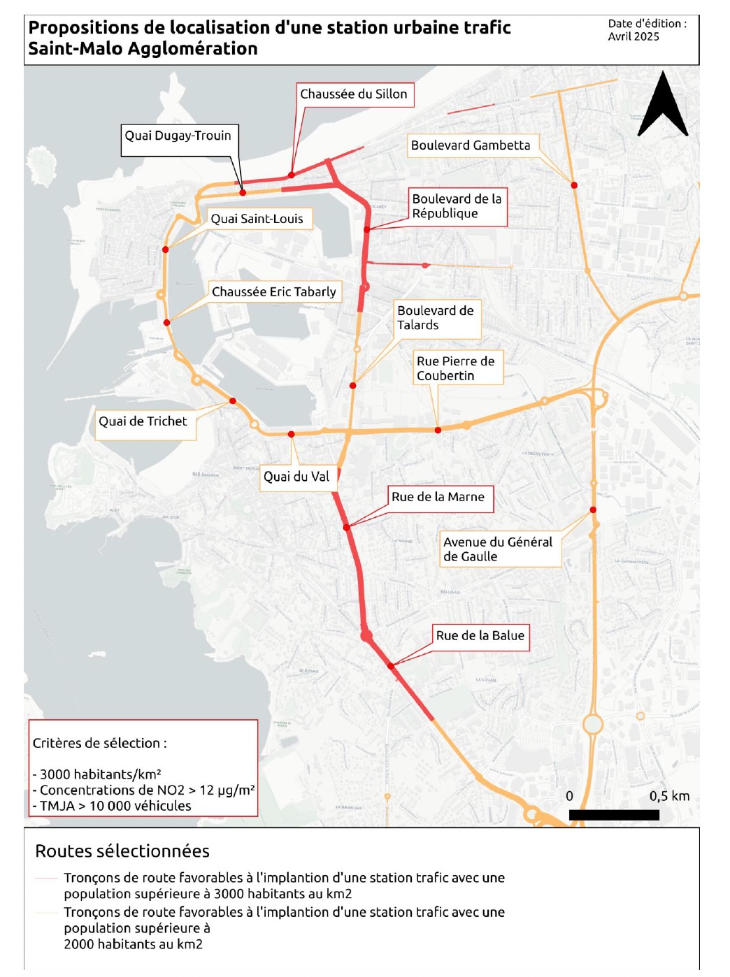 Après concertation avec la collectivité locale de Saint-Malo et vérification des contraintes techniques, un emplacement a été choisi rue de la Marne. A la suite des résultats des mesures effectuées par le camion laboratoire, le dossier sera transmis à l’Etat via la DREAL (Direction régionale de l’environnement, de l’aménagement et du logement), qui décidera de la validation ou non de l’implantation de la future station.